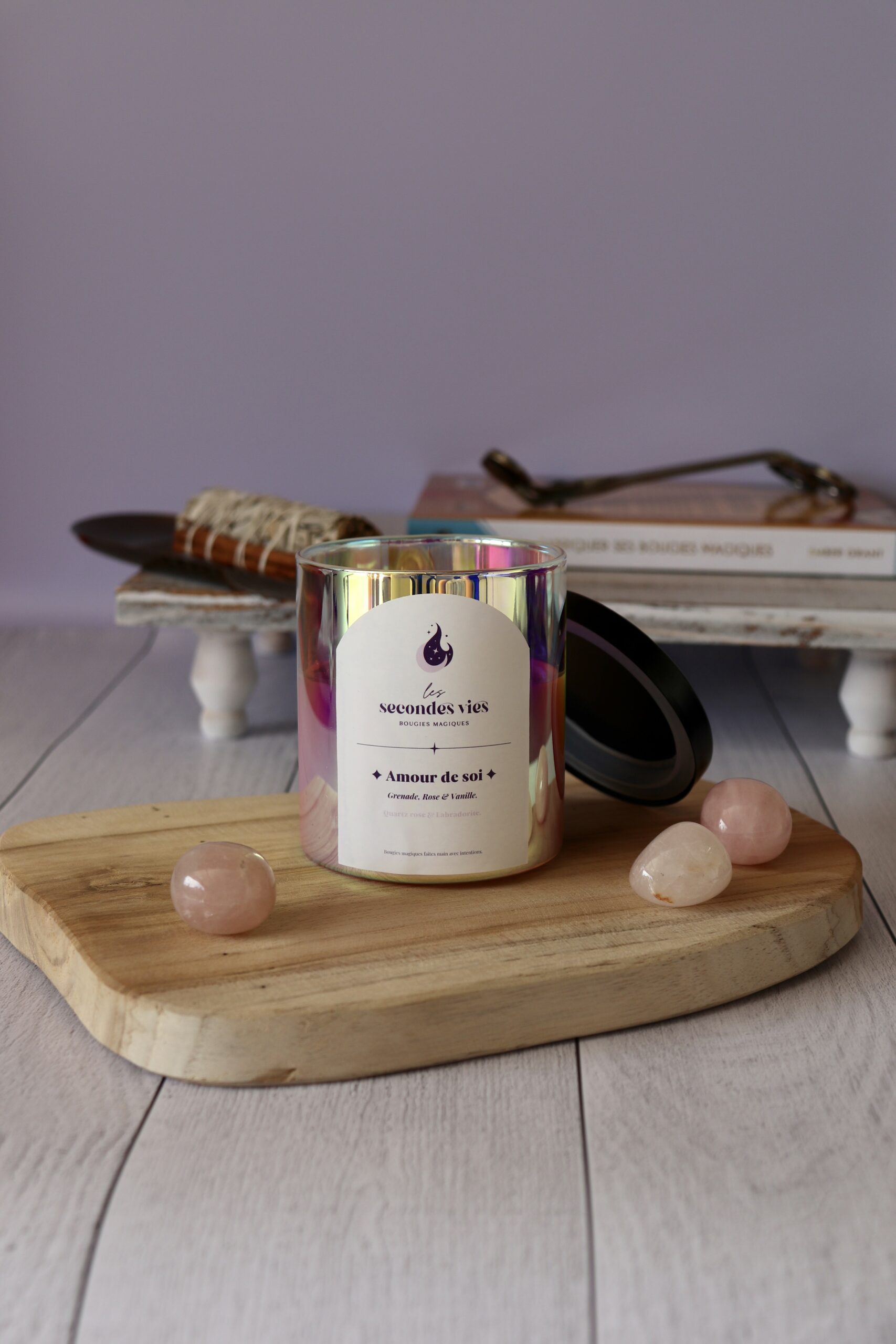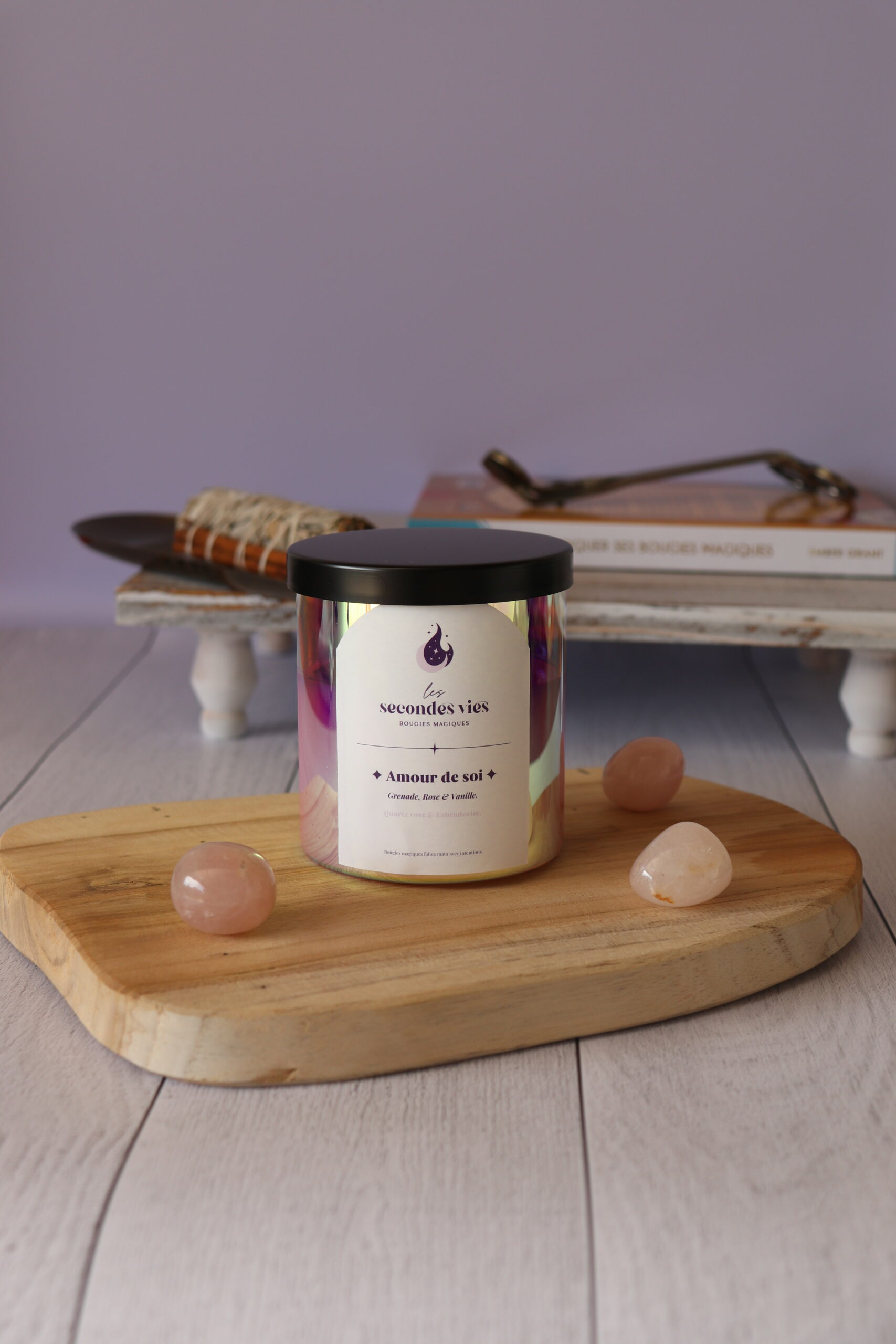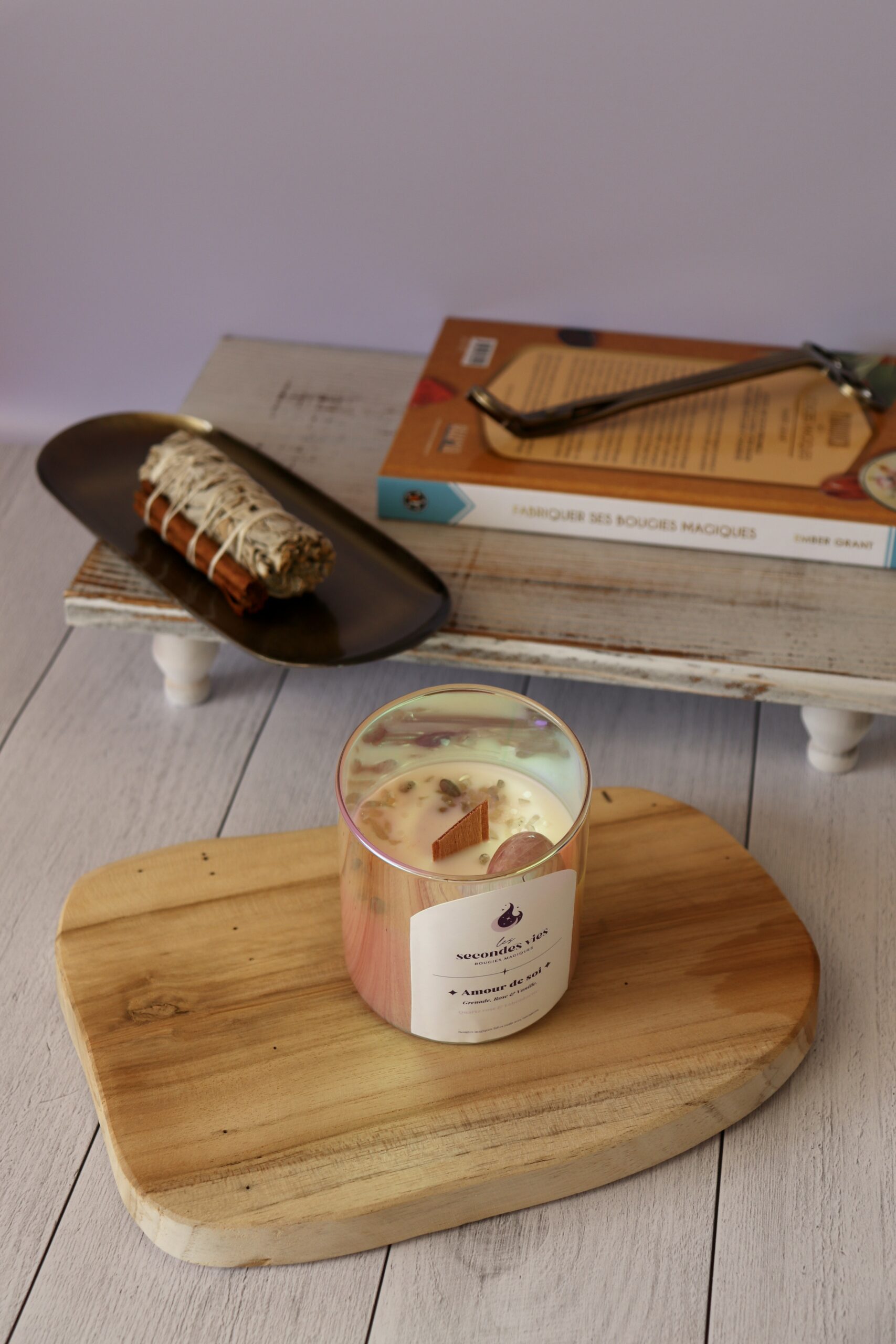 Chaque bougie est conçue avec douceur et amour. Une essence magique infuse au cœur de la cire, transformant ta bougie en complice lumineuse, porteuse de la plus belle des missions, celle de te guider, te soutenir et favoriser ta transformation.